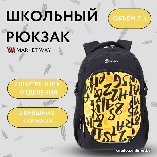 Школьный рюкзак Torber Class X Буквы T9355-22-BLK-YEL