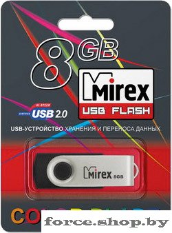USB Flash Mirex SWIVEL RUBBER BLACK 8GB (13600-FMURUS08)