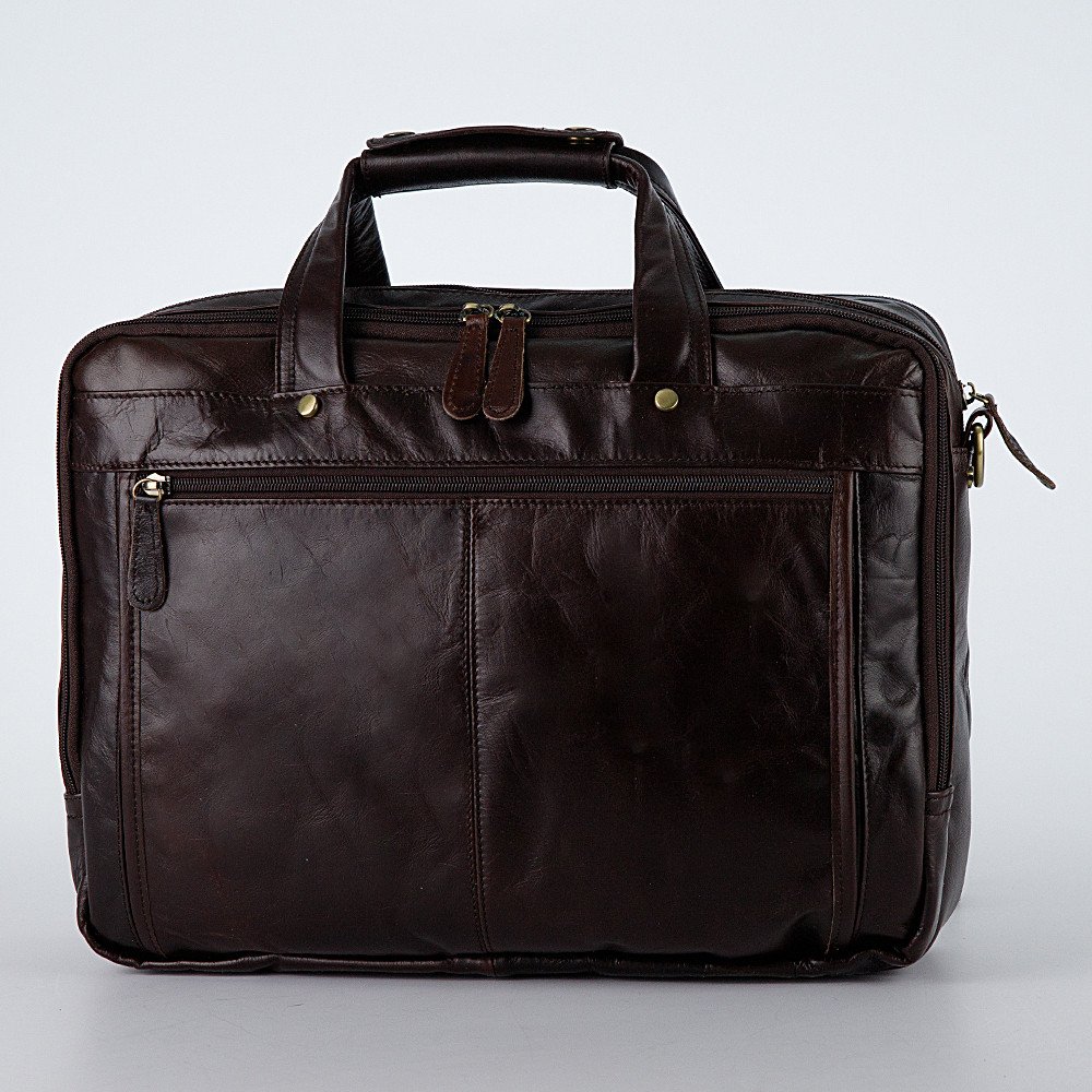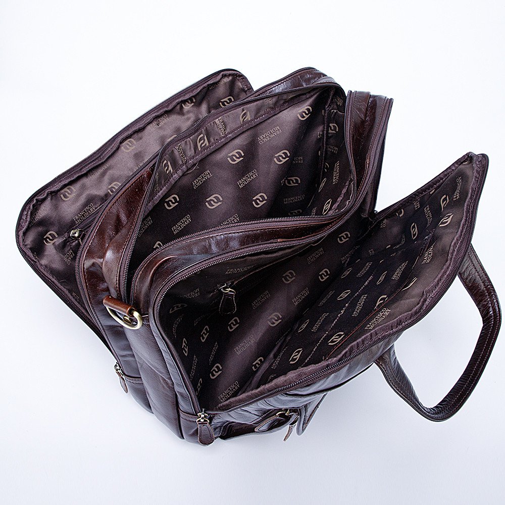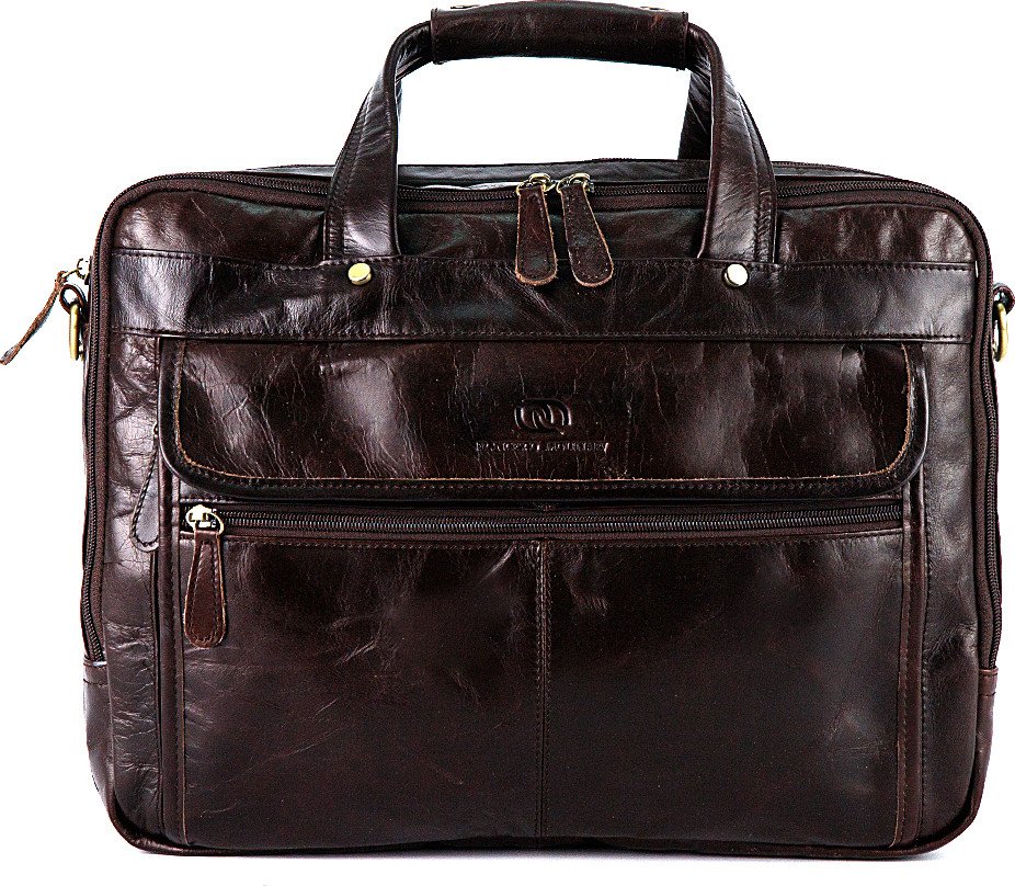 | Информация | - Мужская сумка выполнена из мягкой и гладкой натуральной кожи в цвете темного шоколада с золотистой фурнитурой. - Сумка имеет три отделения на молниях и множество дополнительных карманов, а также внутреннюю текстильную подкладку. - Оснащена двумя ручками для переноски с фиксатором на кнопках и плечевым ремнем. |