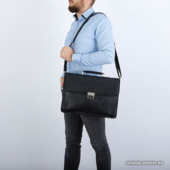 | Информация | Стильный и практичный мужской портфель. Модель с тремя отделениями, одно из которых предназначено для ноутбука и закрывается на молнию, внутри также есть прорези для пластиковых карт, авторучек, телефона и прочих аксессуаров. Внутренняя отделка модели из черного нейлона и спилка. Закрывается на откидной клапан с замком-щеколдой из высокопрочного сплава. К модели прилагается съемный регулируемый ремень. |