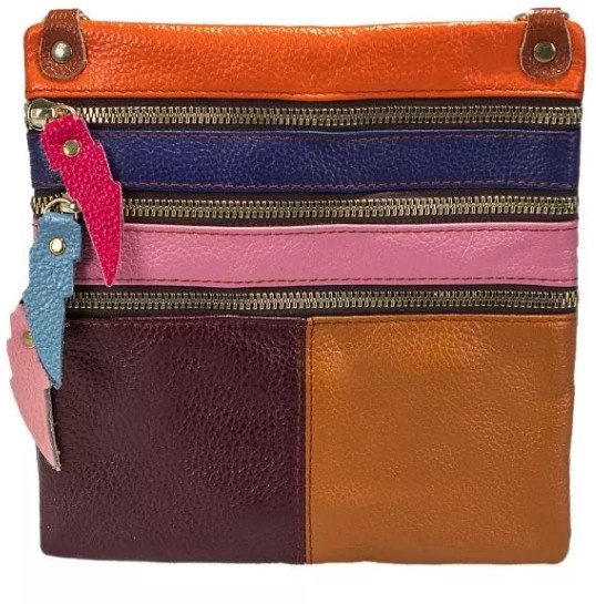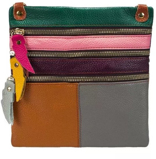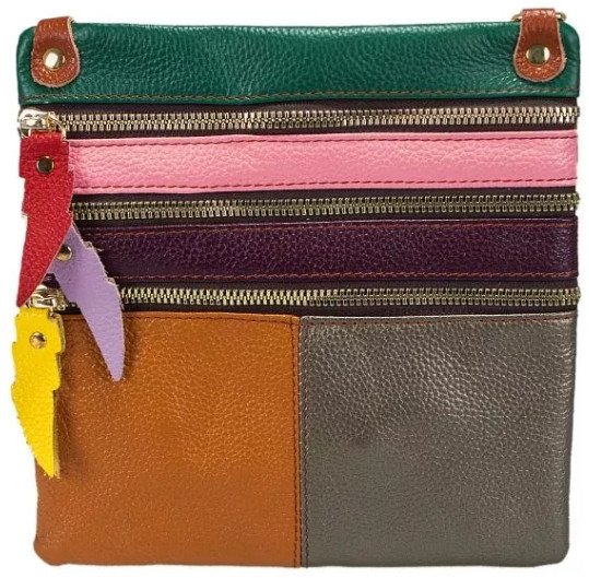 | Информация | - Цвет товара зависит от партии поставки. - Оригинальная сумка-планшет изготовлена из натуральной кожи яркой расцветки в стиле patchwork. - Модель со съемным плечевым ремнем. - На передней стороне — три кармана на молнии, на задней — карман на молнии. - Фурнитура золотистого цвета, планшет декорирован кожаными пуллерами в виде листиков. |