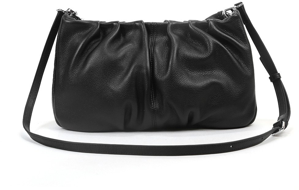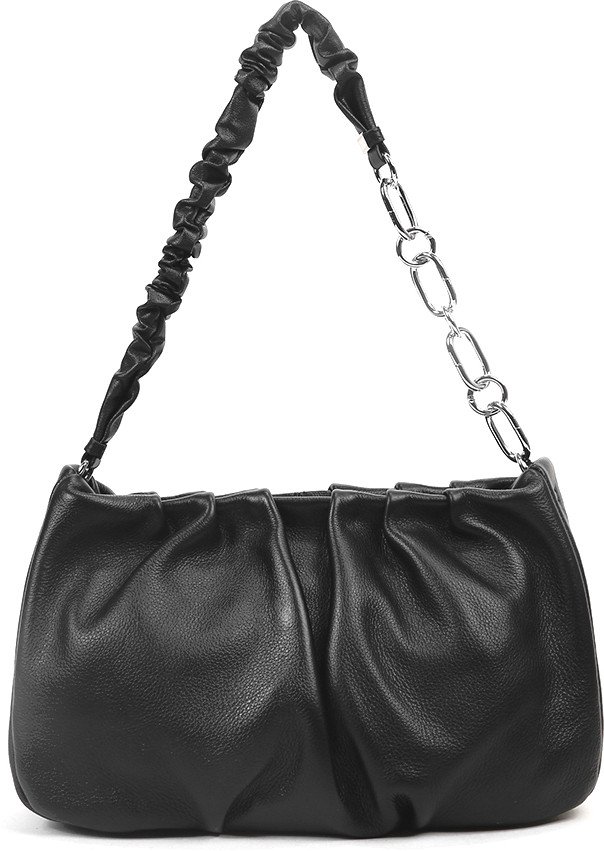 | Информация | - Сумочка выполнена из натуральной кожи и декорирована серебристой фурнитурой. - Внутри есть один отдел с двумя карманами на молнии и одним открытым карманом для мелочей. - Сумка закрывается на молнию и удобно надевается на плечо. - Дополнительно предусмотрен регулируемый кожаный ремешок на плечо. |