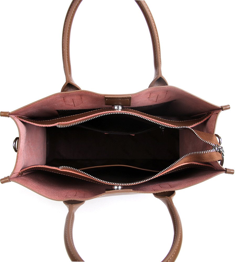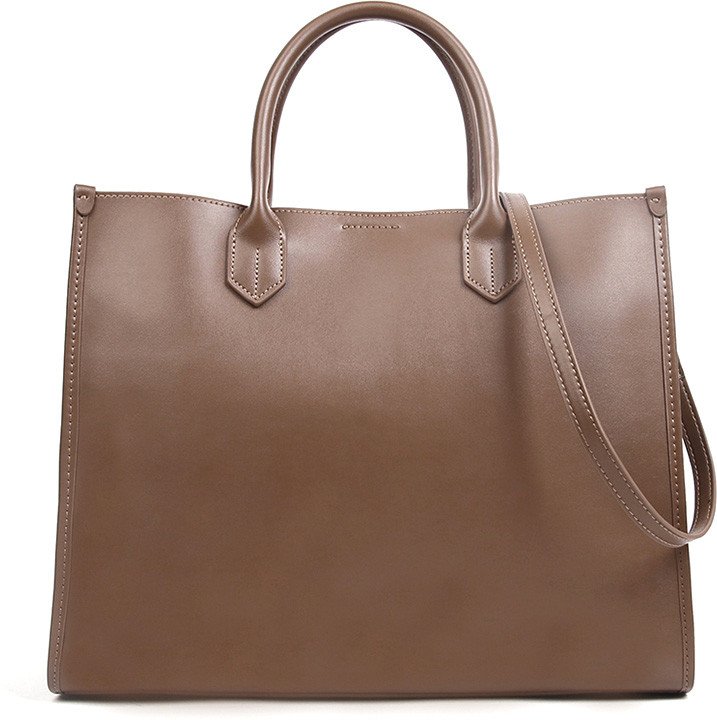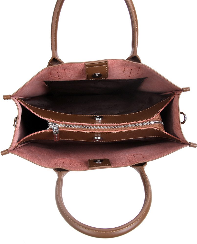 | Информация | - Сумка-тоут изготовлена из плотной гладкой кожи. - Вместительная модель имеет три автономных отделения, закрывается на магнитные кнопки и молнию. - Внутри два кармана: открытый для мелких вещей и на молнии. - На дне установлены металлические ножки. - Дополнительно: съемный регулируемый наплечный ремешок. |