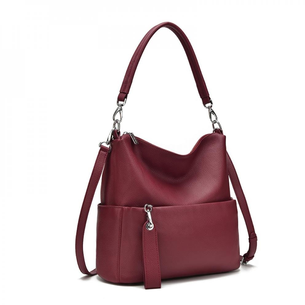 | Информация | - Женская кожаная сумка-мешок закрывается на молнию. - Внутри: одно вместительное отделение, два кармана на молнии и два открытых кармашка. - Снаружи: на лицевой стороне аксессуара расположен накладной карман на молнии, на обратной стороне — карман на молнии. - Модель декорирована серебристой фурнитурой. - Дополнительно: съемный кожаный регулируемый плечевой ремешок. |
