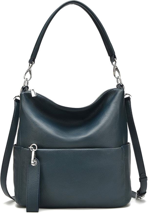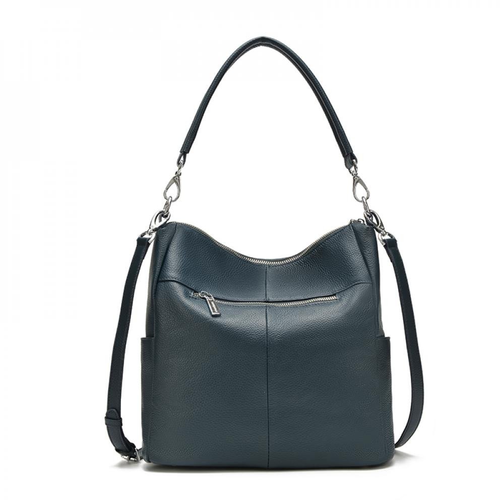 | Информация | - Женская кожаная сумка-мешок с молнией. - Внутри: одно вместительное отделение, два кармана на молнии и два открытых кармашка. - Снаружи: на лицевой стороне аксессуара есть накладной карман на молнии, на обратной стороне — карман на молнии. - Модель украшена серебристой фурнитурой. - Дополнительно: съемный кожаный регулируемый плечевой ремешок. |