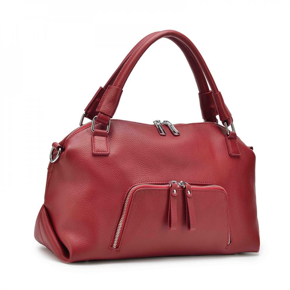 | Информация | - Женская кожаная сумка, закрывается на молнию. - Внутри есть одно вместительное отделение, два кармана на молнии и два открытых кармашка. - Снаружи на лицевой стороне аксессуара расположен накладной карман на молнии, на обратной стороне — карман на молнии. - Модель декорирована серебристой фурнитурой. - Дополнительно есть съемный кожаный регулируемый плечевой ремешок. |