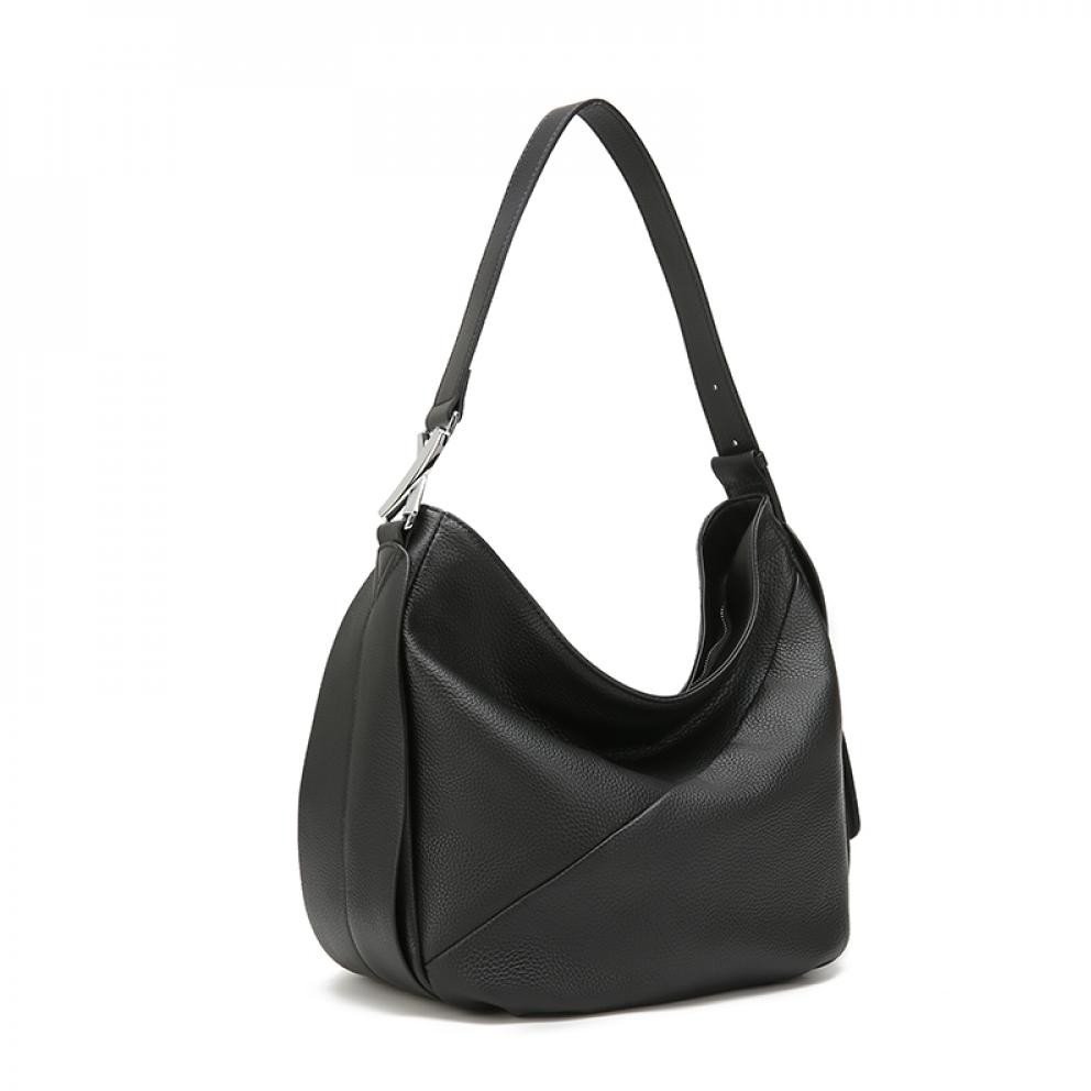 | Информация | - Кожаная женская сумка-мешок с молнией. Внутри два кармана на молнии и два открытых кармана. На обратной стороне сумки есть карман на молнии. Декорирована серебристой фурнитурой. |