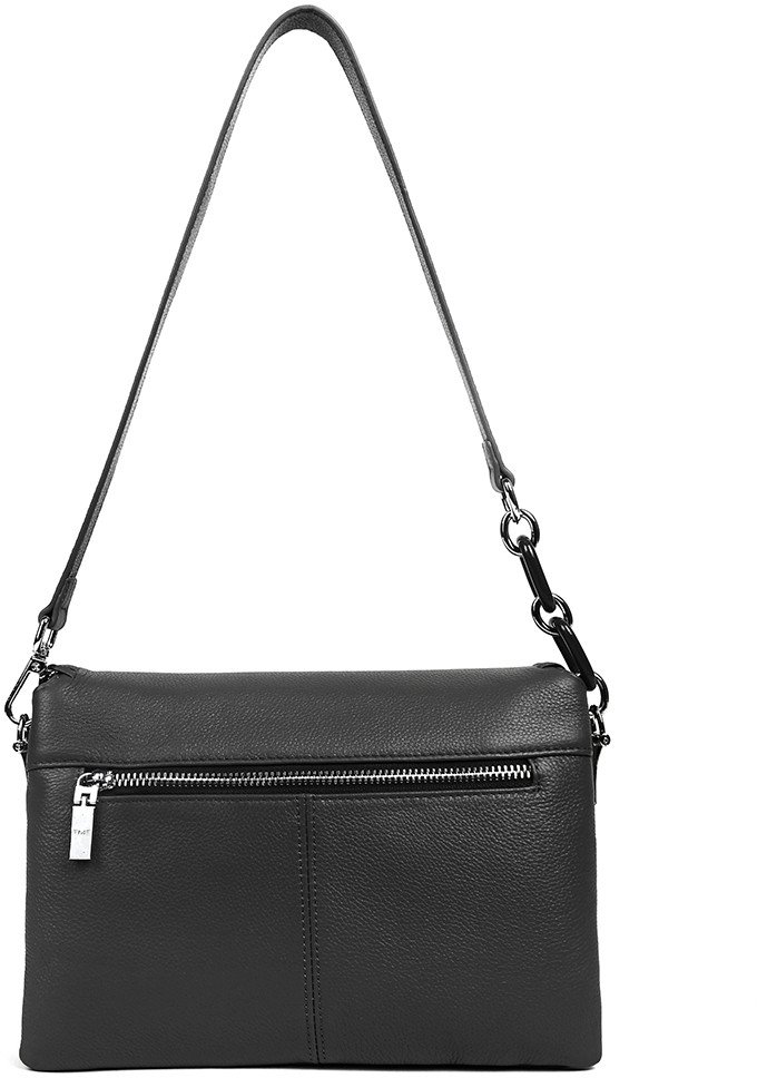| Информация | - Сумка через плечо из натуральной зернистой кожи. - Клапан с цепью на магнитной кнопке. - Внутри 3 отделения, включая карман на молнии. - В комплекте два съемных ремня. - Цвет фурнитуры - серебро. |