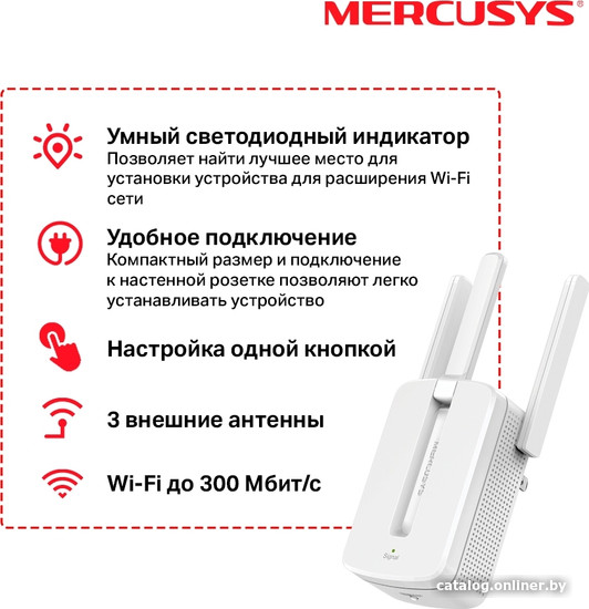 | Информация | ? Усиливает сигнал Wi-Fi в ранее недоступных зонах###BR######BR###? 3 внешние антенны с технологией MIMO ###BR######BR###? Удобное расширение покрытия одним нажатием кнопки WPS###BR######BR###? Компактный размер и подключение к настенной розетке позволяют легко устанавливать устройство###BR######BR###? Светодиодный индикатор позволяет найти лучшее место для установки устройства для расширения Wi-Fi сети |