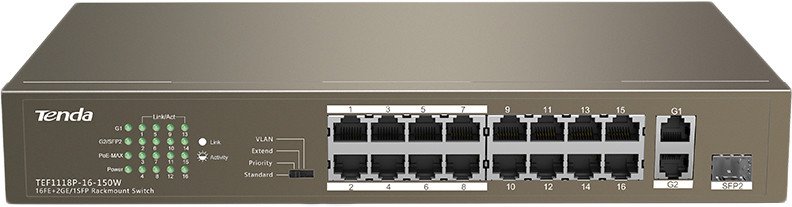 Неуправляемый коммутатор Tenda TEF1118P-16-150W