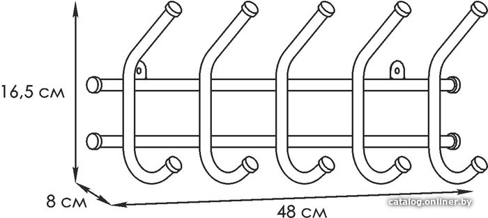 | Информация | Отличительные особенности: Надежная сварная конструкция. Допустимая нагрузка до 7 кг на крючок. Классическая форма. Расстояние между крепежными отверстиями 340 мм. |
