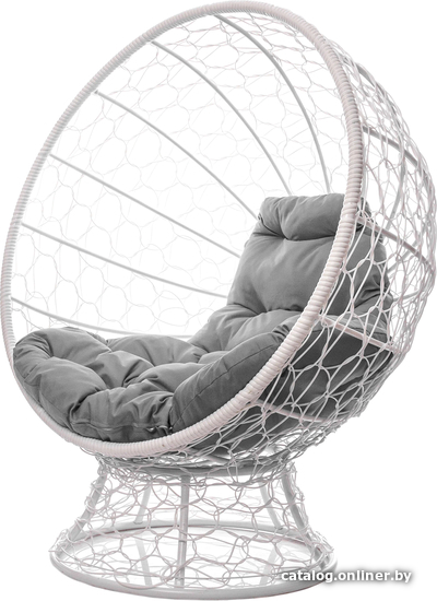 Кресло M-Group Кокос на подставке 11590109 (белый ротанг/серая подушка)