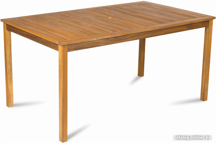 | Информация | ? Прямоугольный стол размером 150 x 90 см.###BR###? Идеален в сочетании с 4 креслами или 2 креслами со скамьей.###BR###? В центре стола имеется стандартное отверстие для установки зонта от солнца.###BR###? Стол изготовлен из тропической древесины акации, что позволяет использовать его как в помещении, так и на открытом воздухе. |