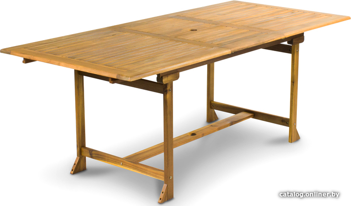 | Информация | Благодаря древесине экзотической акации, из которой изготовлена мебель, обеспечивается высокая устойчивость к воздействию погодных условий, старению, а также плесени, грибкам и разрушающим древесину насекомым. По центру может устанавливаться зонт для защиты гостей от жестких солнечных лучей. |