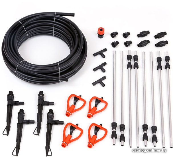 | Информация | Комплект предназначен для организации орошения участка площадью до 100 м. кв. Рабочее давление от 1,5 атм. до 3 атм. Радиус полива одного распылителя от 1м до 3м (в зависимости от давления в системе и высоты распылителя). Температура использования от +5С до + 40С.Комплектация набора:1. Шланг магистральный ? - 20 метров.2. Цанговый зажим ? - 1 шт.3. Распылитель – 4 шт.4. Гайка распылителя - 4 шт.5. Соединительная муфта – 4 шт.6. Алюминиевый удлинитель – 8шт.7. Ножка распылителя – 4шт.8. Тройник ? - 3 шт.Для продления срока службы системы полива производитель рекомендует использовать – фильтр для полива «Жук». |