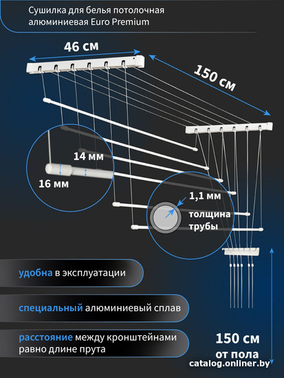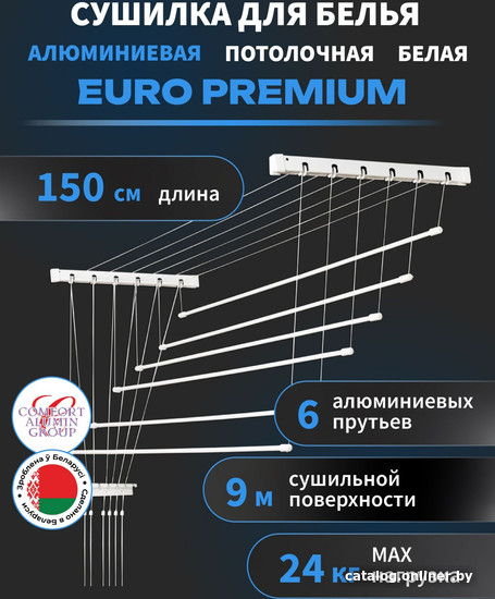 Сушилка для белья Comfort Alumin Euro Premium потолочная 6 прутьев 150 см (алюминий/белый)