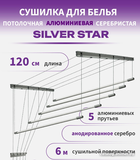 Сушилка для белья Comfort Alumin Group Потолочная 5 прутьев Silver Star 120 см (алюминий)