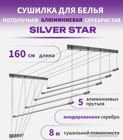 Сушилка для белья Comfort Alumin Group Потолочная 5 прутьев Silver Star 160 см (алюминий)