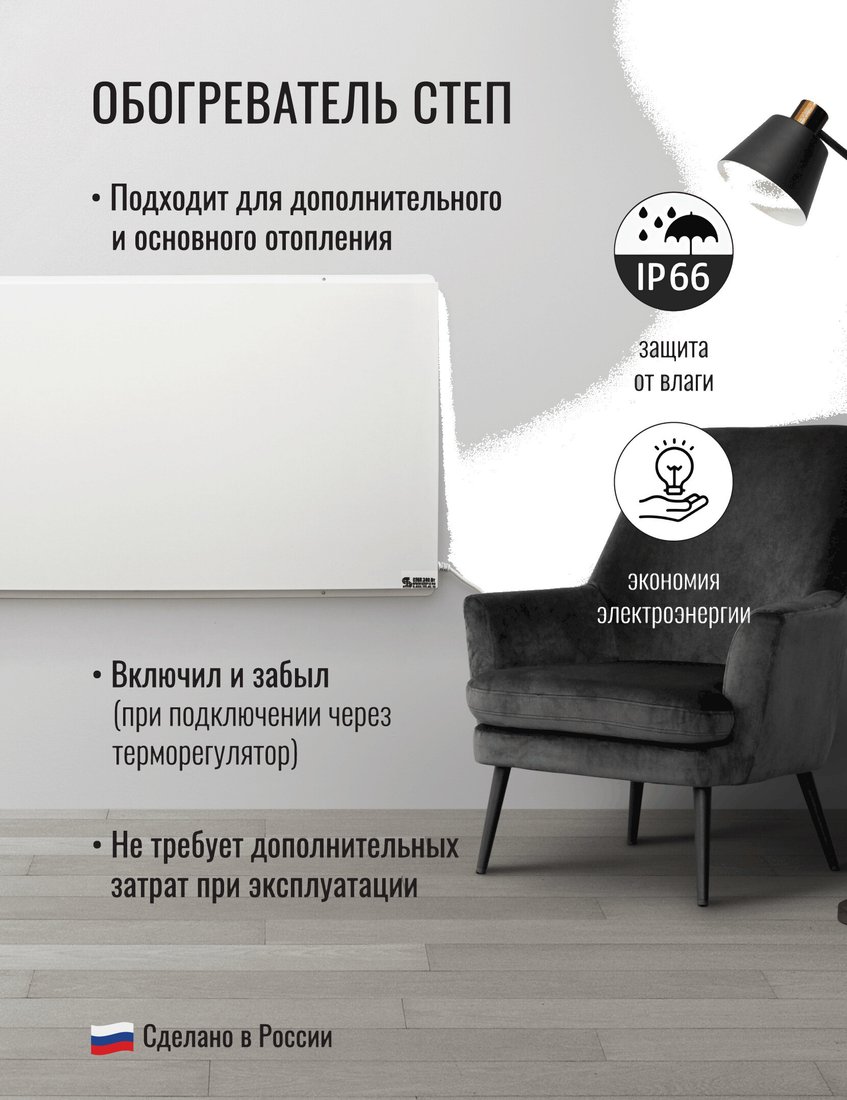 | Информация | -Инфракрасный обогреватель СТЕП-340/1,2х0,59 предназначен для эффективного обогрева жилых и служебных помещений, включая объекты с повышенной влажностью и запыленностью. Он отлично подходит для использования в домах, квартирах, офисах, коттеджах, дачах, теплицах, павильонах, кафе, санузлах и других помещениях. Благодаря своей универсальности и компактным размерам, устройство легко вписывается в различные пространства и может использоваться как основное или дополнительное отопление. -Корпус обогревателя выполнен из металла с антикоррозийным покрытием, что обеспечивает долговечность и устойчивость к внешним воздействиям. Внутри корпуса установлен резистивный нагревательный элемент в силиконовой оболочке, равномерно распределяющий тепло по всей поверхности. Обратная сторона оснащена отражающей теплоизоляцией, предотвращающей лишние потери тепла и повышающей энергоэффективность прибора. -СТЕП-340/1,2х0,59 отличается высоким классом энергоэффективности (А+), низким энергопотреблением (340 Вт) и безопасностью эксплуатации. Устройство защищено от пыли и влаги по стандарту IP66, что делает его отличным выбором для помещений с агрессивной средой или повышенной влажностью, в том числе для санузлов и ванных комнат. -Монтаж обогревателя максимально прост: его можно установить на стену, выбрав подходящее место, и подключить к стандартной электросети. Для удобства эксплуатации рекомендуется использовать терморегулятор (приобретается отдельно), который позволит поддерживать комфортную температуру в помещении и дополнительно снизить энергозатраты. |