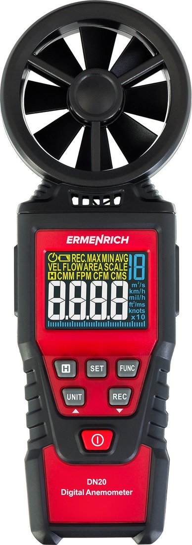 | Информация | - Анемометр Ermenrich Seek DN20 – это цифровой прибор, предназначенный для измерения скорости воздушного потока. Его компактные размеры и встроенный крыльчатый датчик позволяют быстро проводить замеры как на улице, так и в помещениях. Цветной экран с подсветкой обеспечивает удобство работы даже в условиях недостаточного освещения. - Прибор фиксирует текущее значение измерений и сохраняет информацию о максимальных, минимальных и средних значениях. Вы можете выбрать единицы измерения: мили в час, м/с, км/ч, узлы, фут/с, фут/м, CFM. - Индикатор низкого заряда батареи и функция автоотключения помогают экономно расходовать энергию. Питание осуществляется от трех батареек типа ААА (приобретаются отдельно). - Основные особенности: • Измерение скорости движения воздуха с выбором единиц измерения • Удержание текущего значения и запоминание максимальных, средних и минимальных значений • Работа от стандартных батареек, автоотключение и индикатор уровня заряда • Цветной экран с подсветкой - Комплектация: • Цифровой анемометр • Чехол • Инструкция по эксплуатации и гарантийный талон |