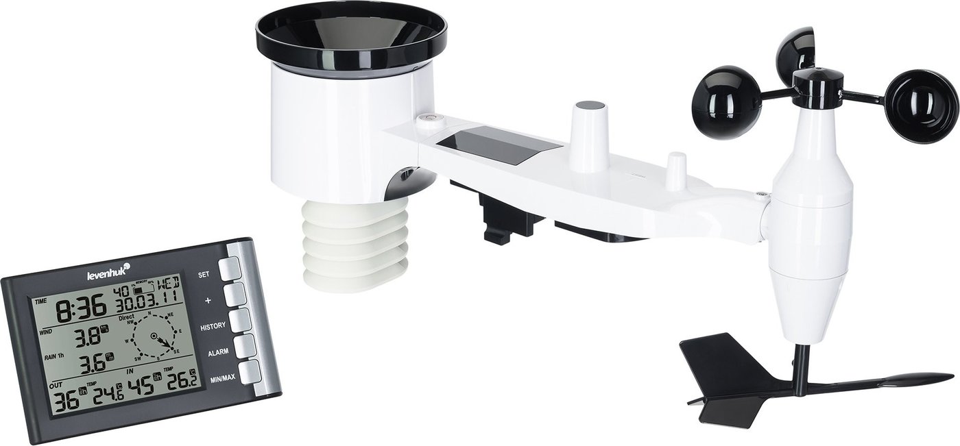 | Информация | - Метеостанция Levenhuk Wezzer PRO LP240 – это профессиональный прибор для точного измерения и хранения данных о погоде на улице и микроклимате в помещении. В комплект входит радиодатчик «5 в 1», который отвечает за наружные измерения. Устройство предлагает широкий функционал: термометр и гигрометр (для наружных и внутренних условий), дождемер и анемометр, а также часы с будильником и календарь для удобства использования.###BR######BR###- С высокой точностью метеостанция фиксирует актуальные данные, ведет историю наблюдений и имеет систему оповещения о критических температурах, влажности, силе порывов и направлении ветра. Прибор запоминает максимальные значения для ветра и минимумы и максимумы для температуры и влажности. Пользователь может выбрать удобные единицы измерения и настроить расположение информационных сегментов на экране. При необходимости доступна подсветка. Оба устройства работают от стандартных батареек (не входят в комплект), что позволяет устанавливать их в любом месте, независимо от наличия розеток. Индикация низкого уровня заряда уведомит о необходимости замены батарей.###BR######BR###- Информация с радиодатчика передается на станцию на расстоянии до 100 метров (при отсутствии препятствий), оптимальная дистанция составляет от 20 до 50 метров.###BR######BR###- Обратите внимание, что в РФ могут быть недоступны все метеорологические онлайн-сервисы, и на них можно увидеть только основные параметры погоды снаружи (в зависимости от используемого сервиса).###BR######BR###- Комплектация включает:###BR###• Метеостанция###BR###• Наружный многофункциональный датчик «5 в 1»###BR###• Инструкция по эксплуатации и гарантийный талон |