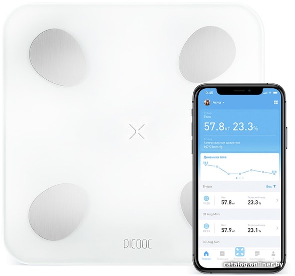 | Функциональные особенности | расчет доли воды, расчет доли жировой ткани, расчет доли мышечной ткани, расчет доли костной ткани, расчет ИМТ (BMI), расчет ПБМ (BMR), расчет обмена веществ с учетом физической активности (AMR), расчет уровня белка, расчет биологического возраста |