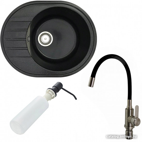 Кухонная мойка БелЭворс New Lux R + смеситель W74004-2 + дозатор L405F (черный)