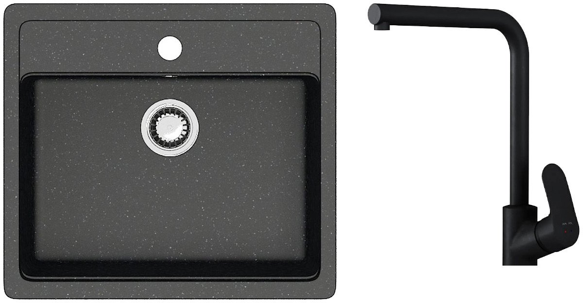 Кухонная мойка Berge BR-5750 + смеситель AM.PM Like Like F8005022 (черный)