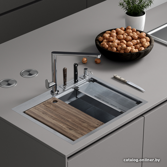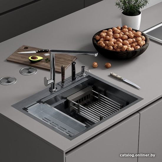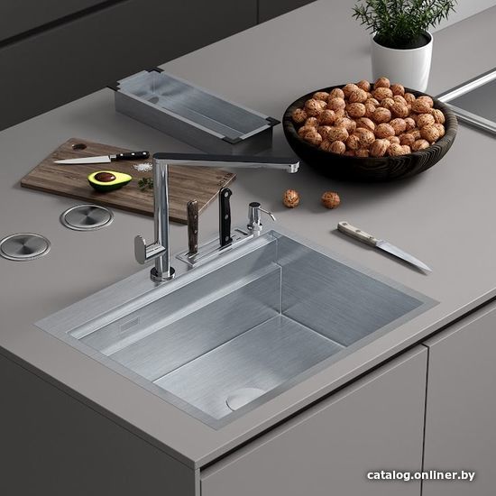 | Комплектация | сифон, держатель для ножей, разделочная доска, корзина из нержавеющей стали, коландер телескопический, дозатор для моющих средств, 2 заглушки на отверстия, комплект креплений к столешнице |