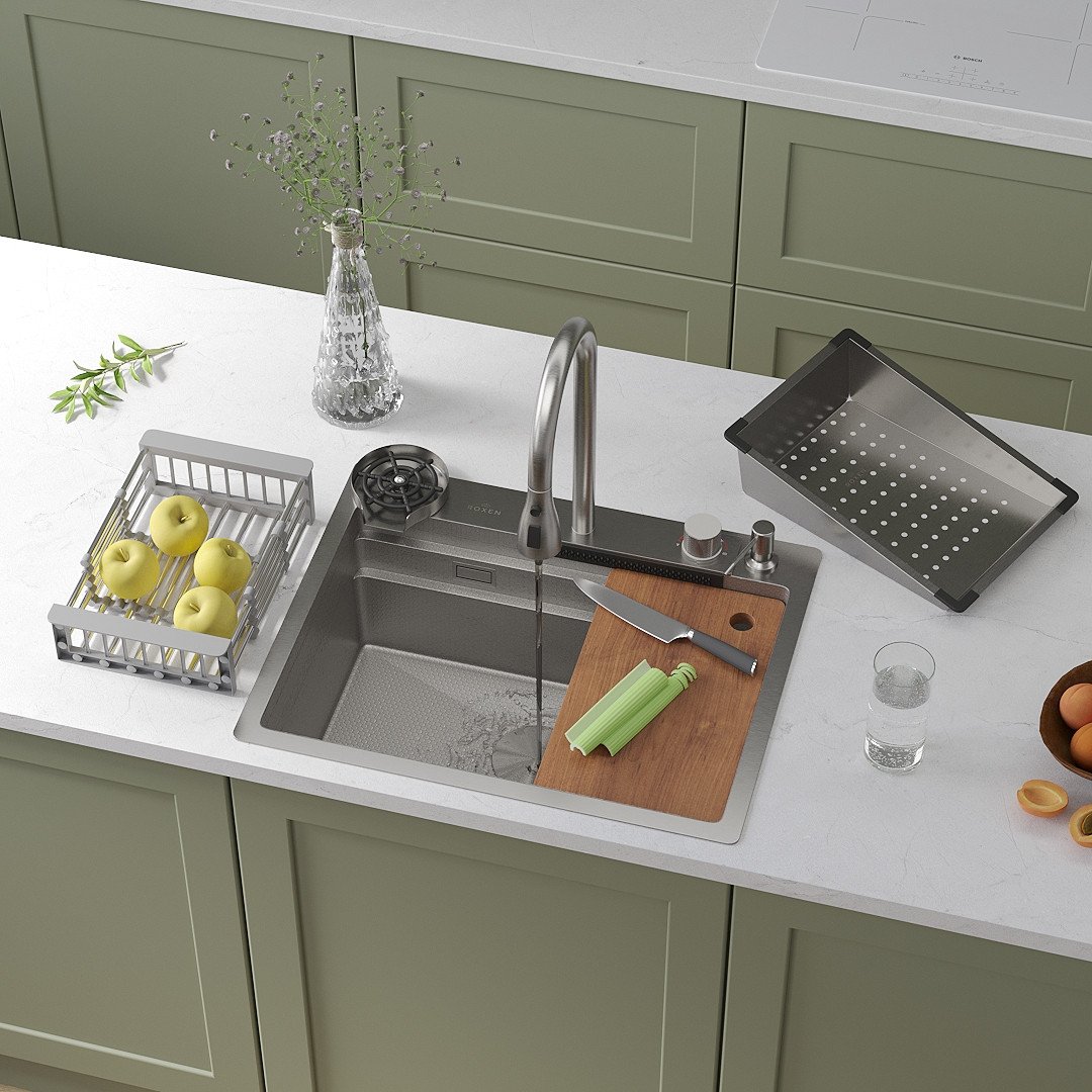 Кухонная мойка Roxen Stage Plus 560250-60-S многофункциональная 8 в 1 (60*48/текстурный сатин)