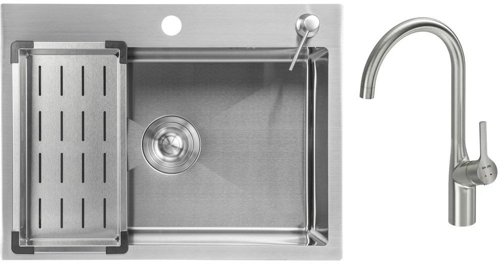 | Комплектация | Мойка кухонная Saniteco 6045 (с сифоном, дозатором и коландером); Смеситель AM.PM Spike F9S07011 (сатин) |