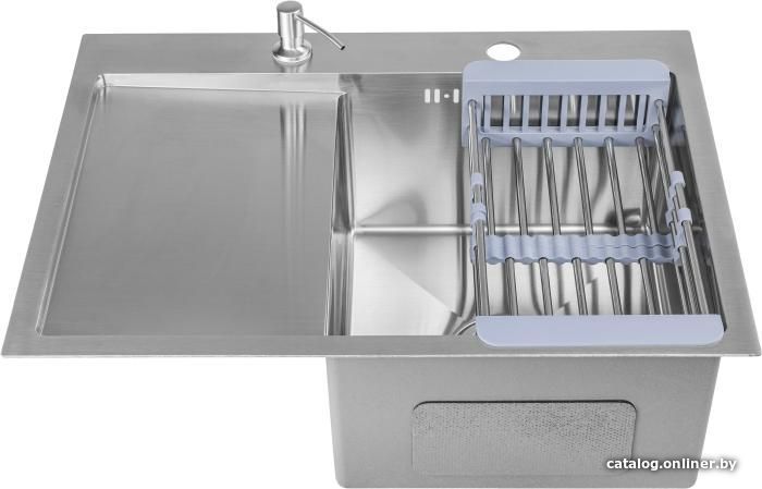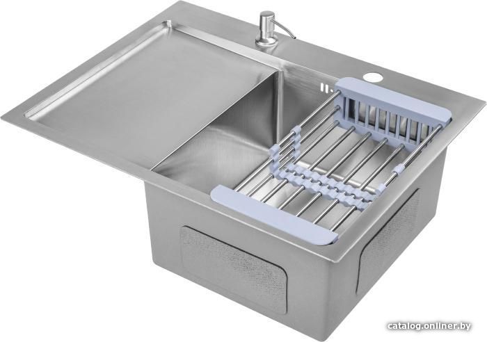 Кухонная мойка Saniteco 6550-R (с сифоном, дозатором и коландером)