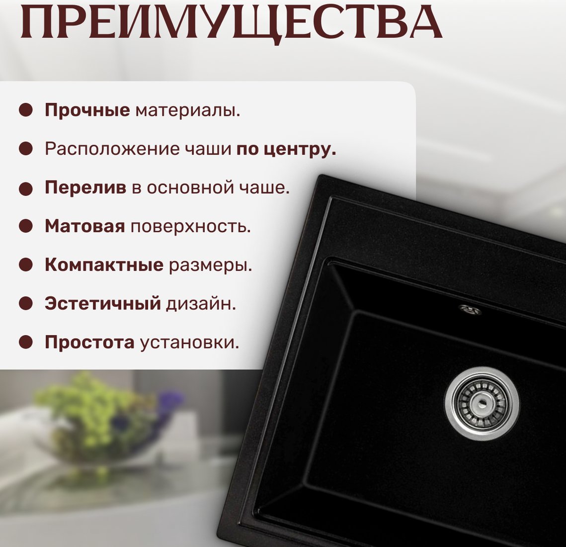| Информация | - Мойка кухонная Mare — это стильный и практичный элемент, который значительно упрощает работу на кухне. Изготовленная из керамогранита, она отличается высокой прочностью и стойкостью к повреждениям. Прямоугольная форма мойки позволяет удобно интегрировать ее в любой интерьер. Черный цвет с оттенком оникса и матовая поверхность придают кухне современный и элегантный вид. |
