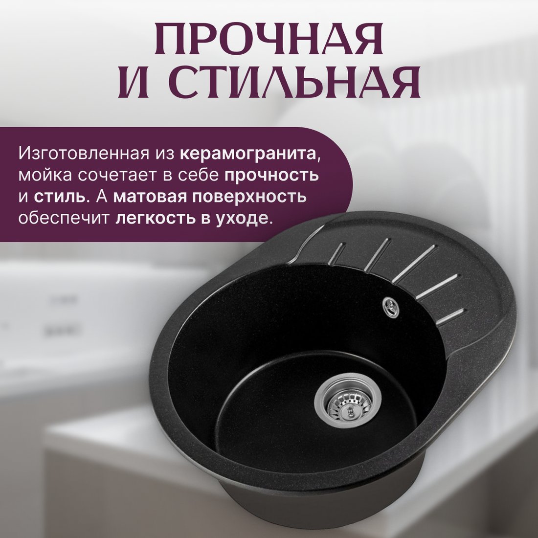 | Информация | - Мойка кухонная Pura в цвете оникс — это идеальное решение для вашей кухни. Изготовленная из керамогранита, она отличается высокой прочностью и стойкостью к повреждениям. Врезной способ установки позволяет легко интегрировать мойку в любое кухонное пространство. |