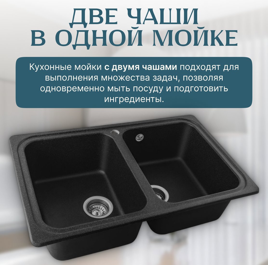 | Информация | - Мойка кухонная Vetus (черный) — это стильное и практичное решение для вашей кухни. Две чаши позволяют одновременно мыть посуду и готовить ингредиенты, что делает её незаменимой помощницей в быту. |