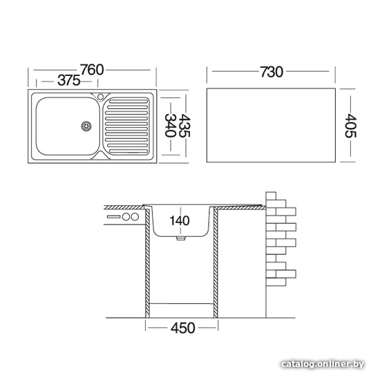 | Информация | Кухонная мойка из нержавеющей стали, врезная, с большой чашей и широким крылом. |