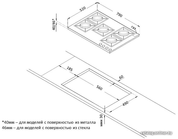 | Овальные/прямоугольные конфорки | Нет |