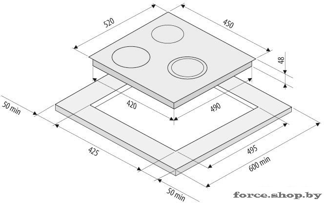 | Количество конфорок | 3 |