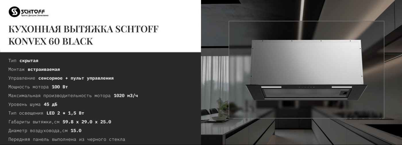 Кухонная вытяжка Schtoff Konvex 60 Black (черный)