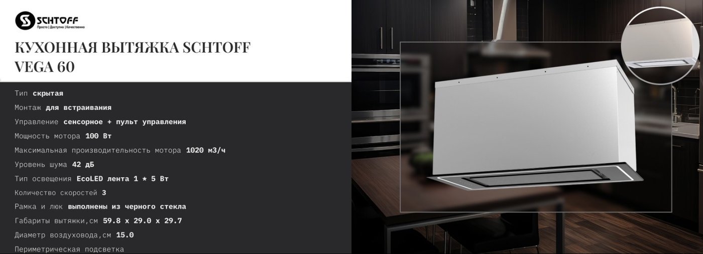 Кухонная вытяжка Schtoff Vega 60 Black (черный)