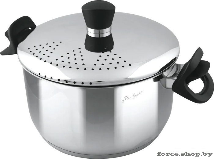 | Информация | Первоклассная нержавеющая сталь. Кастрюля обладает прочным многослойным дном и, наряду с крышкой, изготавливается из первоклассной нержавеющей стали. Крышка со сливным механизмом из нержавеющей стали и особым механизмом фиксации в виде складных ручек, что позволяет легко процеживать макароны. Бакелитовый держатель для крышки и рукоятки. |