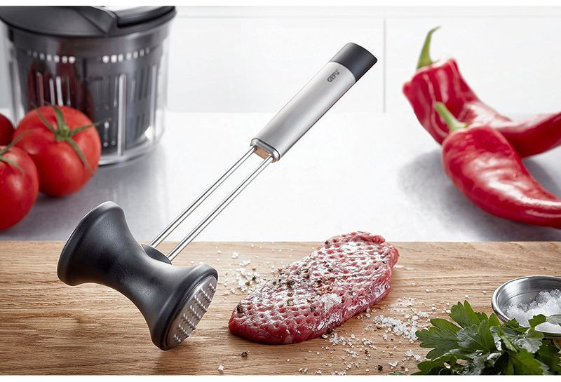 | Информация | - Двусторонний молоток для отбивания мяса с плоской и шипованой сторонами.###BR######BR###- Удобная эргономичная рукоятка.###BR######BR###- Размер: 26,7*7,5 см.###BR######BR###- Материал: высококачественная нержавеющая сталь, пластик.###BR######BR###- Можно мыть в посудомоечной машине.###BR######BR###GEFU представляет новую серию кухонных аксессуаров PRIMELINE, разработанную в сотрудничестве с компанией INVIVO Design. Серия включает широкий ассортимент продукции для приготовления пищи, обжаривания и выпечки. Все инструменты серии PRIMELINE имеют отверстия для подвешивания и пригодны для мытья в посудомоечной машине. |