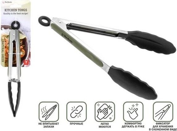 | Информация | -Кулинарные щипцы PERFECTO LINEA NATURAL GREEN 21-010007 – это удобный и практичный аксессуар для вашей кухни, который поможет легко и безопасно переворачивать, захватывать и переносить различные продукты во время готовки. Щипцы выполнены из высококачественного пищевого силикона, что обеспечивает бережное обращение даже с деликатными блюдами и предотвращает повреждение посуды с антипригарным покрытием. -Ручки изделия изготовлены из прочной нержавеющей стали и дополнены силиконовыми накладками, которые обеспечивают надежный и комфортный хват. Для удобства хранения на щипцах предусмотрен специальный запирающий механизм, позволяющий фиксировать их в закрытом положении, что экономит место на кухне. -Благодаря универсальному размеру 23 см, щипцы прекрасно подходят как для приготовления мяса, рыбы, овощей, так и для сервировки салатов и других блюд. Стильный зеленый цвет рабочего элемента придаст кухне свежий акцент и отлично впишется в современный интерьер. -Щипцы легко моются, не впитывают запахи и прослужат долго благодаря прочным материалам. Это отличный выбор для тех, кто ценит качество, практичность и современный дизайн кухонных принадлежностей. |
