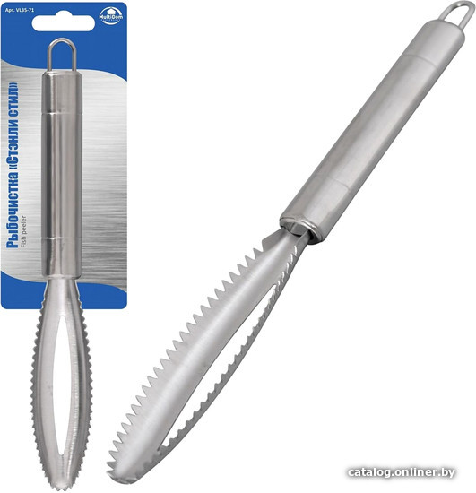 | Информация | Чистка от чешуи очень часто вызывает дискомфорт. Как почистить рыбу быстро и без особых хлопот? Удобный предмет для очистки рыбы в домашних условиях – ручная рыбочистка. С этим приспособлением вы быстро удалите чешую, сохраните порядок на кухне и приступите к приготовлению рыбных блюд. Помойте тушку, выложите ее в удобную миску, возьмите рыбочистку и начинайте чистить против роста чешуи. Лучше всего делать это прямо в раковине. После очистки одной стороны сделайте то же самое с другой. Простой дизайн и универсальная конструкция делают изделие подходящим для любого вида рыбы. |
