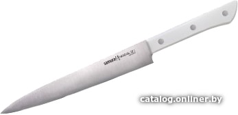 | Информация | Узкий длинный нож для нарезки (слайсер) применяется для аккуратного пластования на тончайшие ломтики колбасы, балыка, сыра, соленой и копченой рыбы.Длина лезвия слайсера Samura Harakiri достаточна для реза практически любого продукта одним проходом. Именно поэтому в быту такой нож часто применяется для разрезания габаритных овощей или фруктов, например, арбузов и дынь.А ещё он станет просто незаменимым помощником при приготовлении суши, роллов и нигири. Для этих блюд филигранное качество реза особенно важно. |