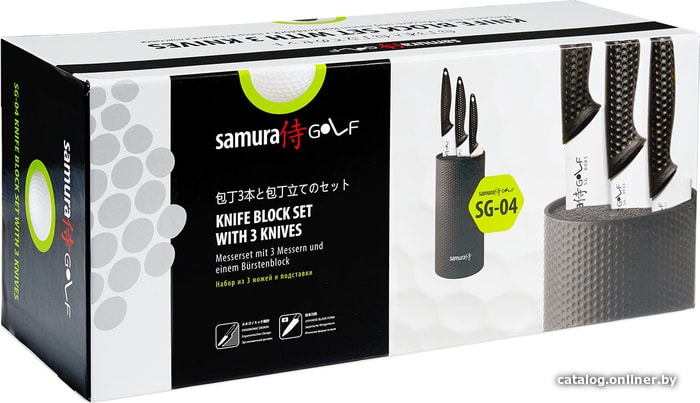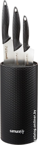 | Комплектация | - Подставка для ножей KBG-101- Нож овощной SG-0010 9.8 см- Нож универсальный SG-0023 15.8 см- Шеф нож SG-0085 22.1 см |