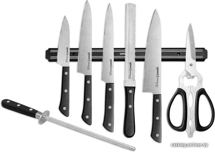 | Дополнительные предметы в наборе | кухонные ножницы, точило для ножей, магнитный держатель |