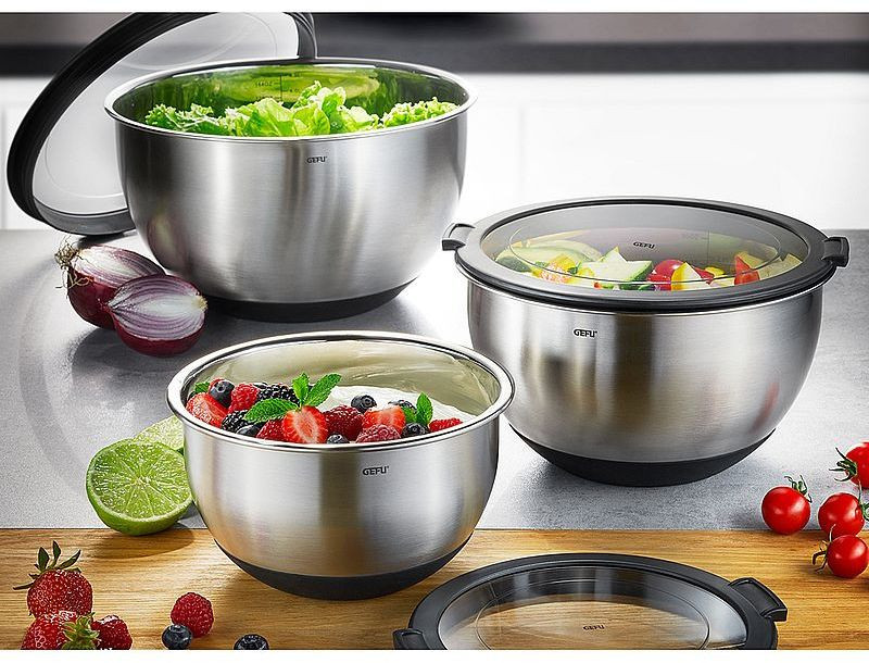 | Информация | - Универсальная миска с крышкой из нержавеющей стали.###BR###- Матовая снаружи и глянцевая внутри.###BR###- Мерная шкала до 600 мл на внутренней поверхности.###BR###- Герметичная прозрачная крышка с окантовкой из силикона.###BR###- Дно миски покрыто силиконом для устойчивости на столе. |