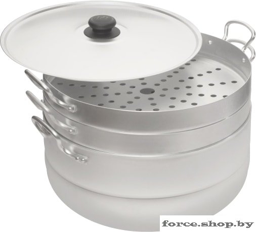 | Информация | Алюминиевый манты-казан с сетками – удобная, практичная и долговечная посуда для приготовления блюд на пару. Конструкция мантоварки состоит из корпуса и комплекта сеток для размещения продуктов на разных уровнях. Отверстия в дне сеток позволяют распределить пар по всему объему мантоварки, что позволит приготовить еду равномерно и одновременно. Количество сеток можно регулировать, добавлять или уменьшать. Сетки можно приобрести дополнительно.Использовать мантоварку с сетками очень просто: вода заливается в базовую кастрюлю не менее 2/3, выложить продукты на сетки, закрыть крышкой и можно включать плиту. Алюминиевая посуда подходит для газовых и электрических плит, ее легко мыть и можно компактно хранить.В манты-казане удобно готовить: манты, пельмени, хинкали, вареники, тефтели, котлеты, рулеты, штрудели и другие объемные сочные кулинарные изделия из мяса, теста, овощей. |