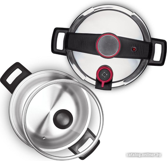 | Информация | ? Скороварка изготовлена из первоклассной нержавеющей стали 18/10 и прочного пластика. ? Удобная в обращении крышка открывается одной рукой. ? С помощью регулятора давления можно очень быстро приготовить изысканные блюда. ? Скороварка оснащена манометром, двойным предохранительным клапаном и защитным окошком. ? Предохранительная заглушка от превышения давления и массивные ручки для удобства обращения. ? Дизайнерская скороварка с многослойным основанием предназначена для использования на всех типах плит, включая индукционные. ?? В комплект входит стеклянная крышка. |